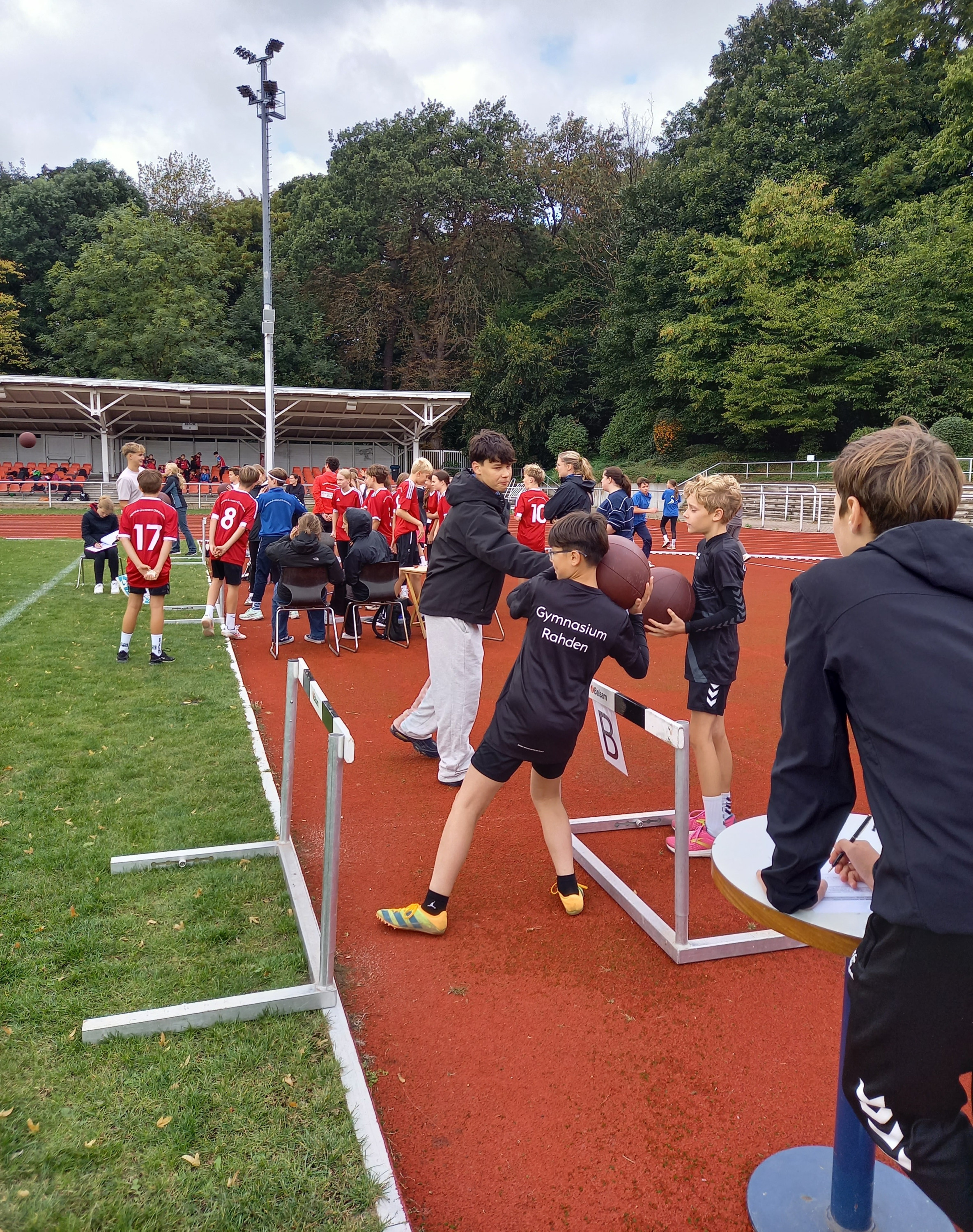 12 Jungen und Mädchen aus den Jahrgangsstufen 6 und 7 haben Finalluft „geschnuppert“. Nach der erfolgreichen Teilnahme an den Kreismeisterschaften im Sommer musste man sich jetzt der Konkurrenz aus ganz Westfalen stellen – Dortmund, Recklinghausen und weitere große Namen waren mit ihren Teams ins Weserstadion nach Minden gereist. Die Teams traten gegeneinander im Scher-Hochsprung, Zonenweitsprung, Heulerwurf, 8-Minuten-Lauf, Staffelsprint und Medizinballstoß an.