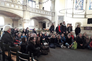 Die zweite Station bildete die in den späten 1920er Jahren errichtete St. Heinrichskirche. Dort standen kirchenpädagogische Methoden auf dem Programm, obwohl vermutlich am stärksten in Erinnerung bleiben wird, dass der bestellte Referent einfach verschwand…